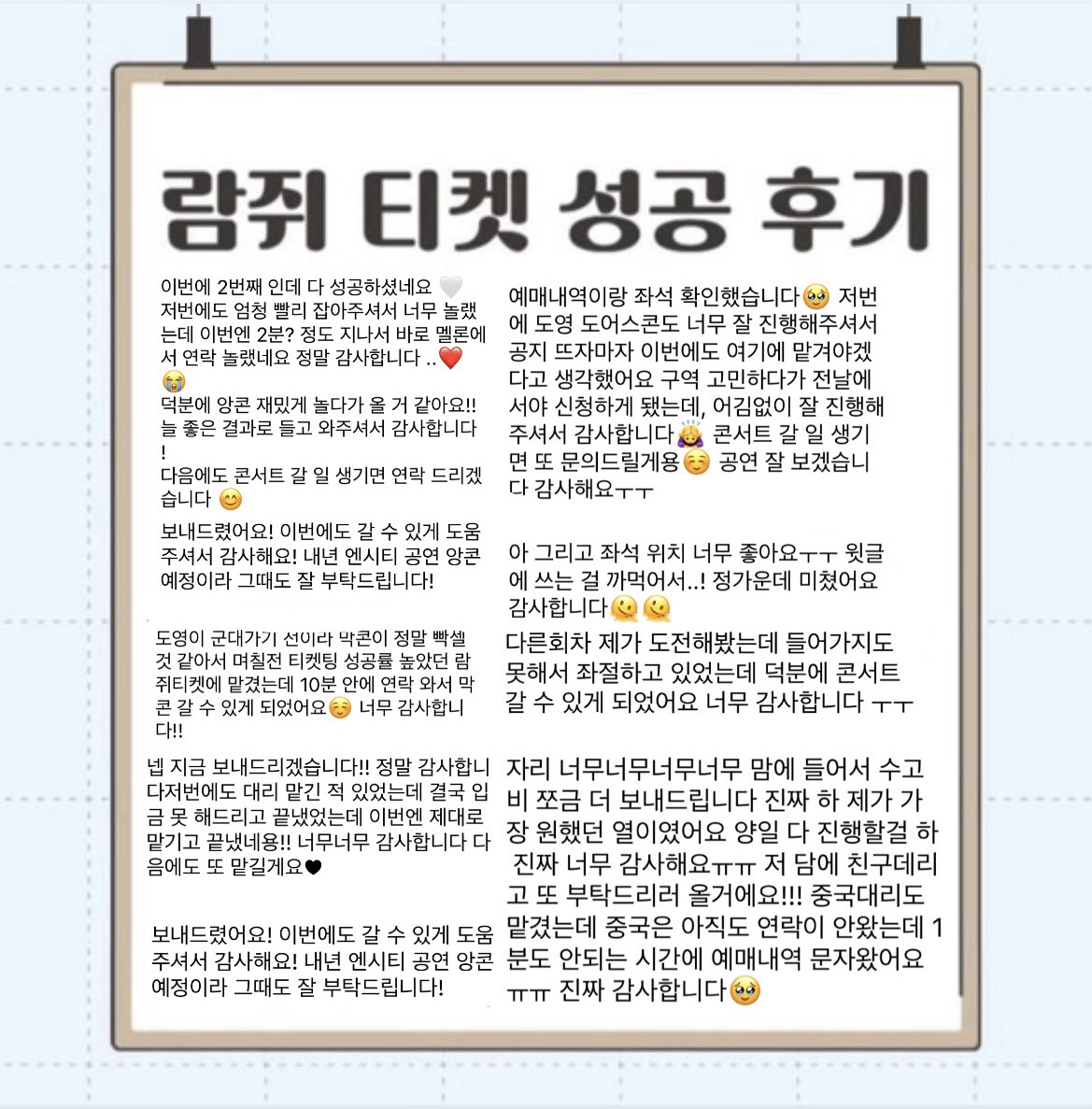 일예는 구역지정 안되시고 전좌석시도만 장당 수고비 고정가로 가능하세요! 하현상 댈티도 문의주세요🫶🏻