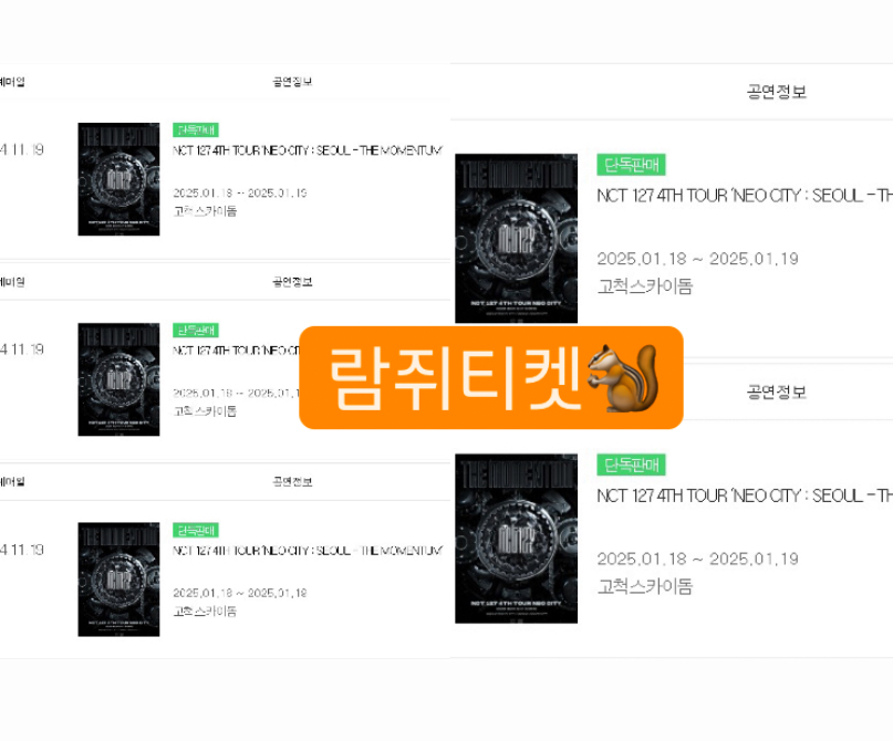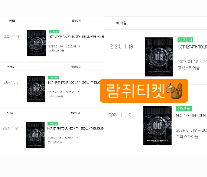 11/19 엔시티127 콘서트 대리티켓팅 선예매 성공했습니다 🐿️