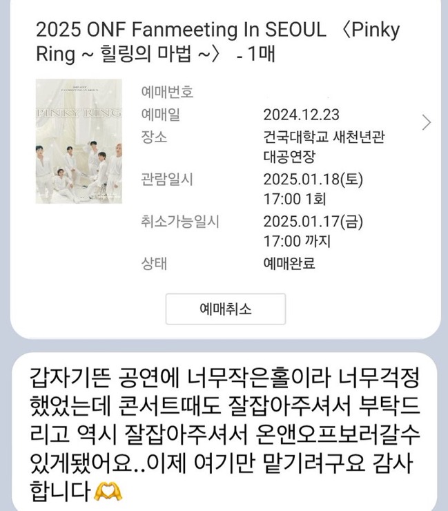 2025 ONF Fanmeeting in SEOUL Pinky Ring 온앤오프 팬미팅 대리티켓팅 100%성공했습니다💪🏻💪🏻