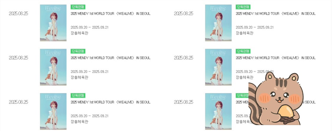 2025 WENDY 1st WORLD TOUR W:EALIVE IN SEOUL 웬디 콘서트 대리티켓팅 성공경력