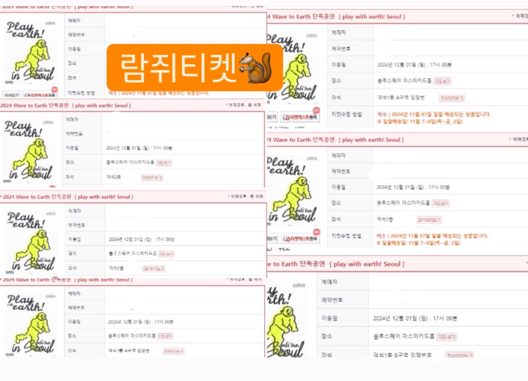 카테고리 없음 2024 Wave to Earth 단독공연 [play with earth! Seoul]웨이브투어스 대리티켓팅 성공경력 ramg_ticket 2024. 10. 25. 01:10 웨이브 투어스 콘서트 대리티켓팅 신청자분 100%전부성공했습니다 ✌🏻문의 http://pf.kakao.com/_YPrYG