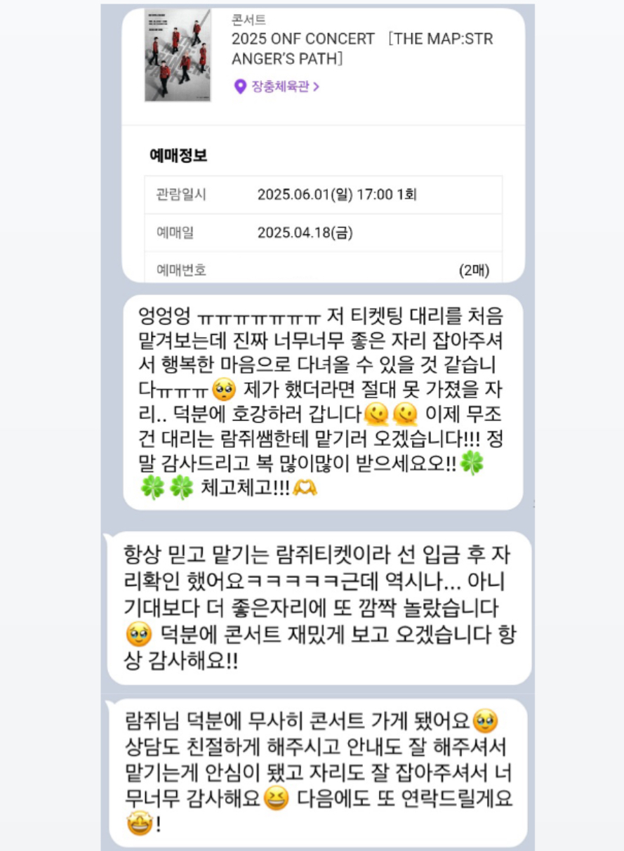 온앤오프 콘서트 선예매 대리티켓팅 성공했습니다